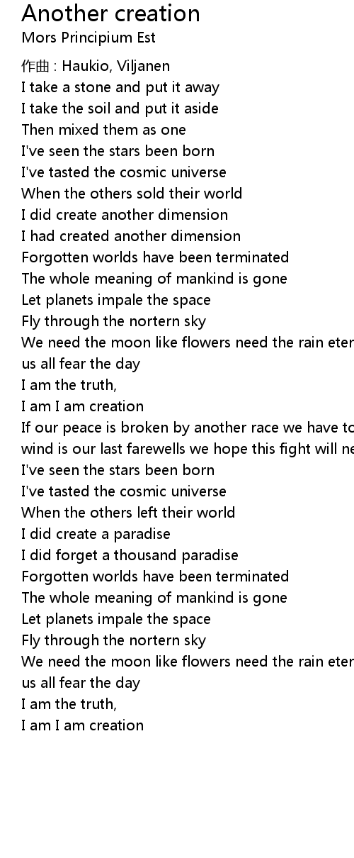 | 歌曲 | Another creation |