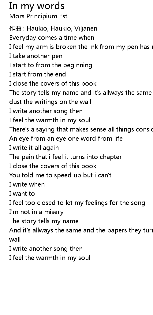 | The story tells my name and it' s allways the same and the papers they turn to dust the writings on the wall | |