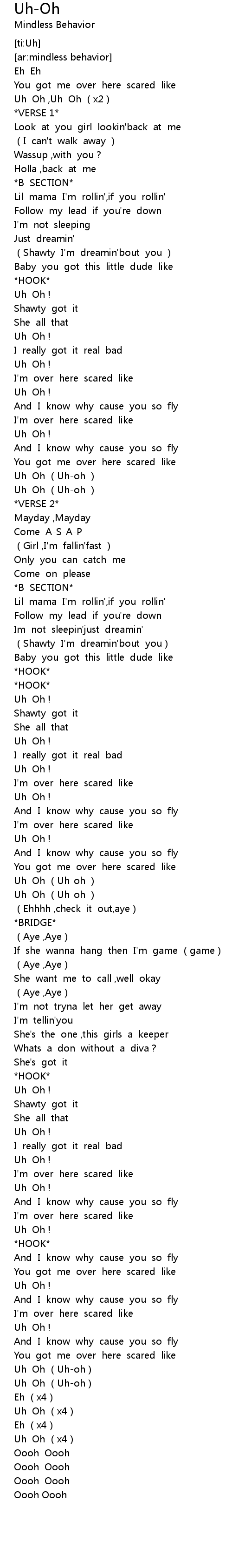 | [00:03.251] | Uh Oh , Uh Oh x2 |