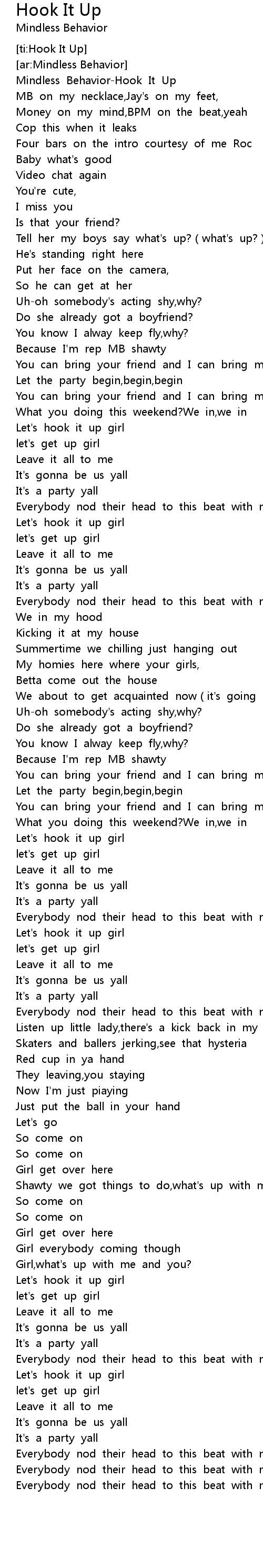 | [00:00.15] | Mindless BehaviorHook It Up |