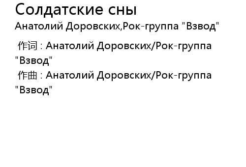| [00:00.000] | 作曲 : Анатолий Доровских/Рок-группа "Взвод" |