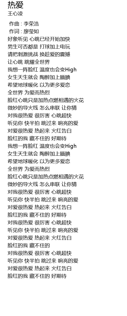 | [03:04.860] | 对爱很热爱 热起来 火红告白 |
