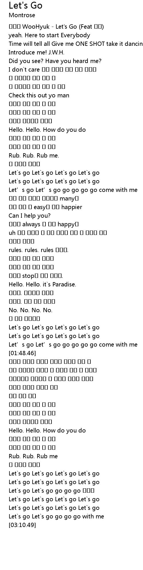 | [03:00.93] | Let s go Let s go Let s go Let s go |