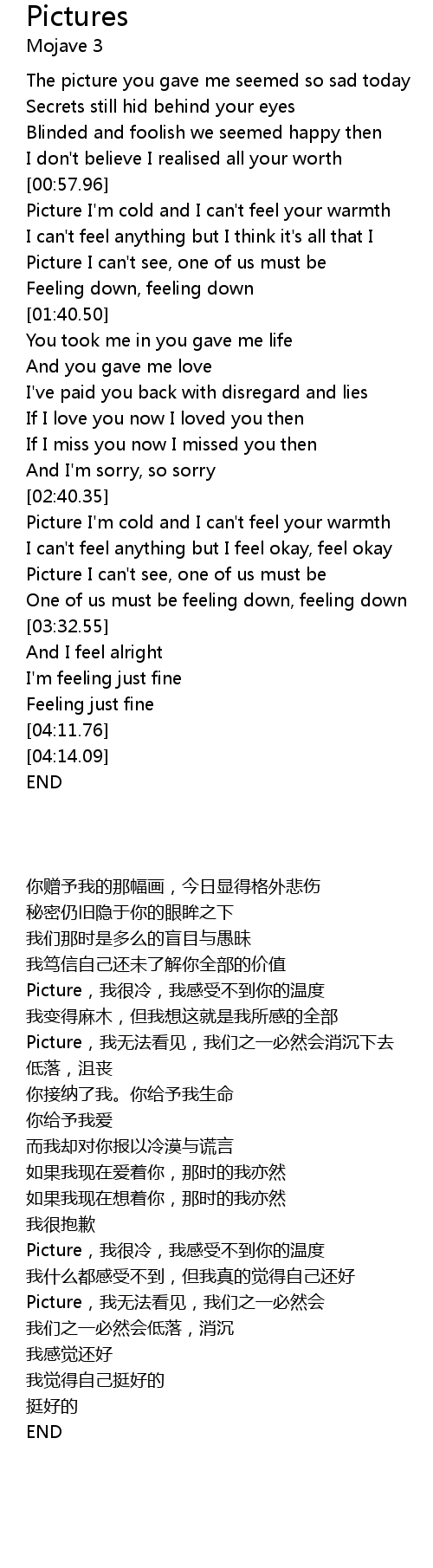 Picture I'm cold and I can't feel your warmth |