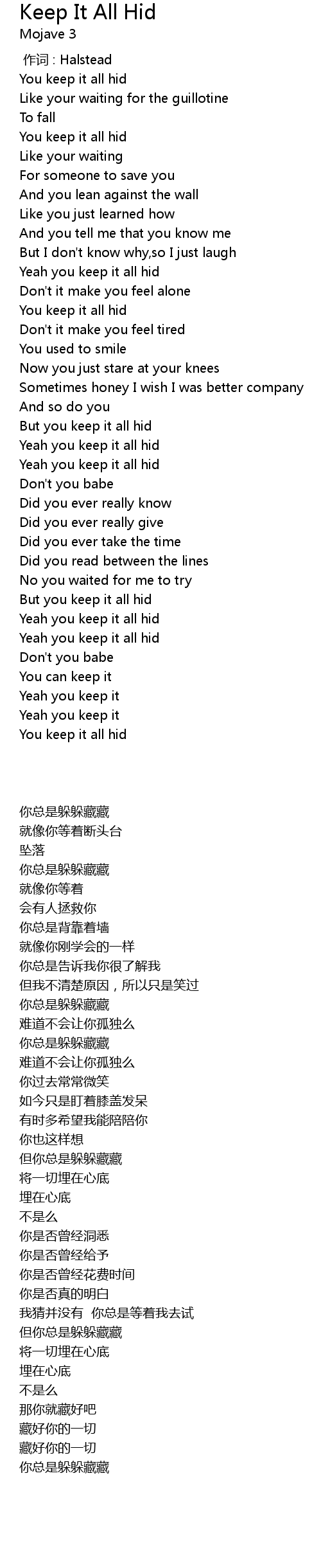 | [03:41.00] | You keep it all hid |