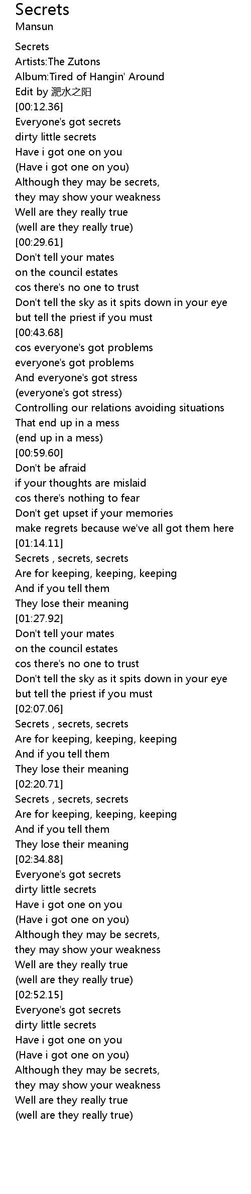 | [02:37.60] | Everyone's got secrets |