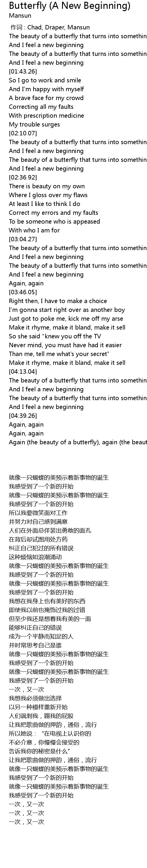 | [02:10.34] | The beauty of a butterfly that turns into something new |