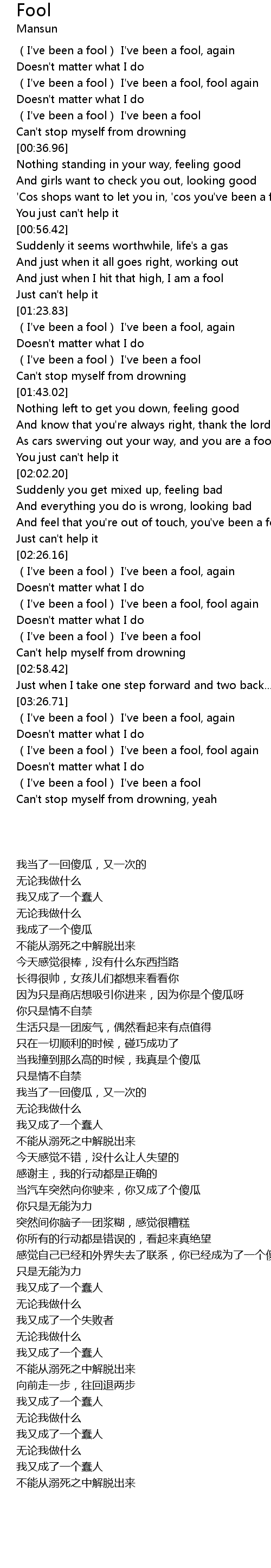 | [03:36.58] | (I've been a fool) I've been a fool, fool again |