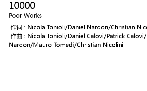 | [00:00.000] | zuò qǔ : Nicola Tonioli Daniel Calovi Patrick Calovi Daniel Nardon Mauro Tomedi Christian Nicolini |