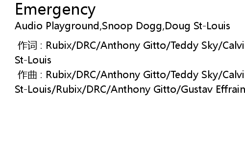 | [00:00.000] | 作曲 : Rubix/DRC/Anthony Gitto/Teddy Sky/Calvin Broadus/Doug St-Louis/Rubix/DRC/Anthony Gitto/Gustav Effraimsson |