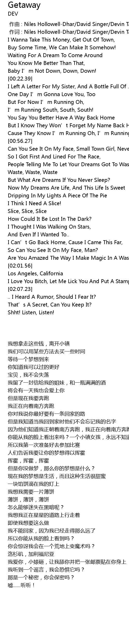 | [00:00.339] | 作词 : Niles Hollowell-Dhar/David Singer/Devin Tailes |