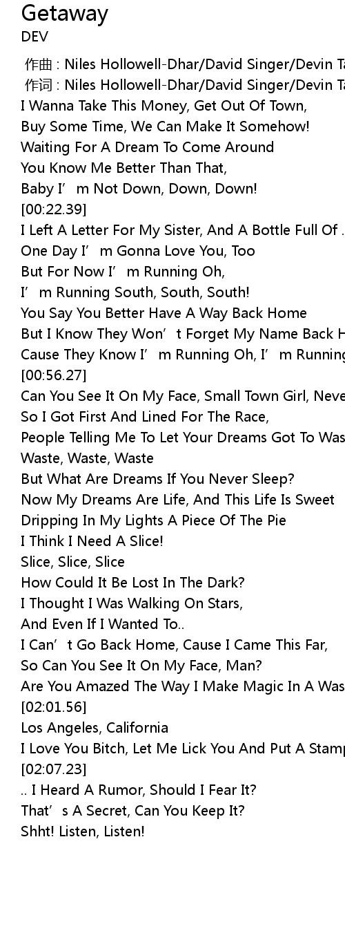 | 歌曲 | Getaway |