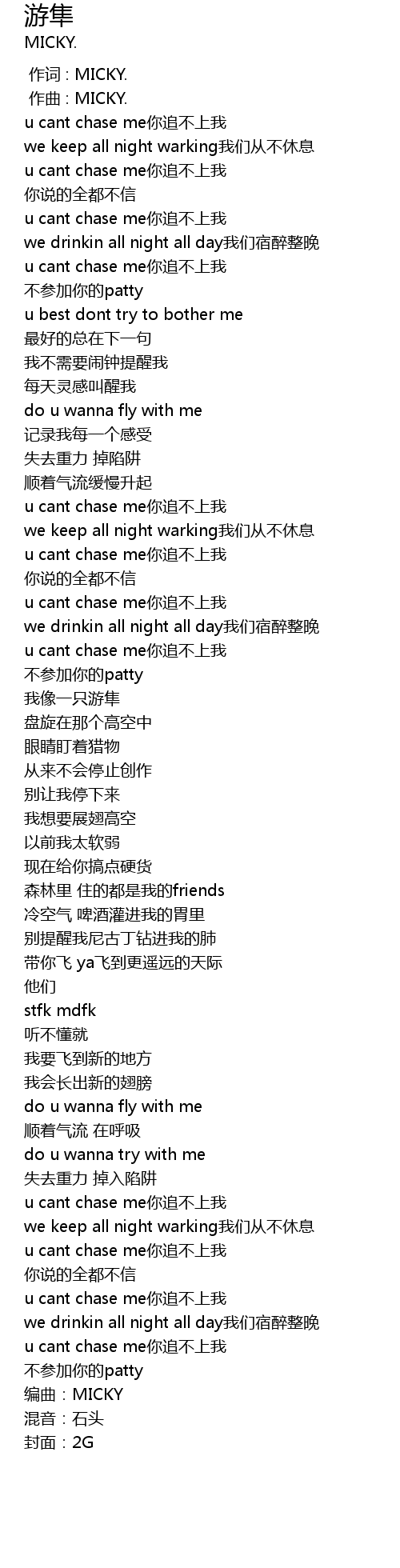 | [03:17.896] | u cant chase me你追不上我 |