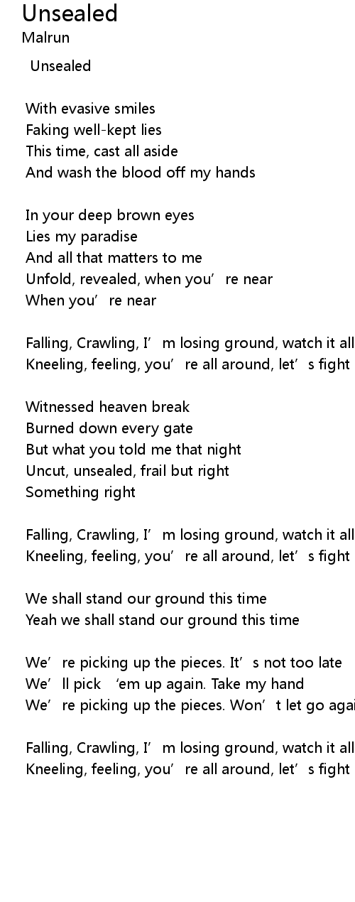 | Falling, Crawling, I’m losing ground, watch it all come down | |