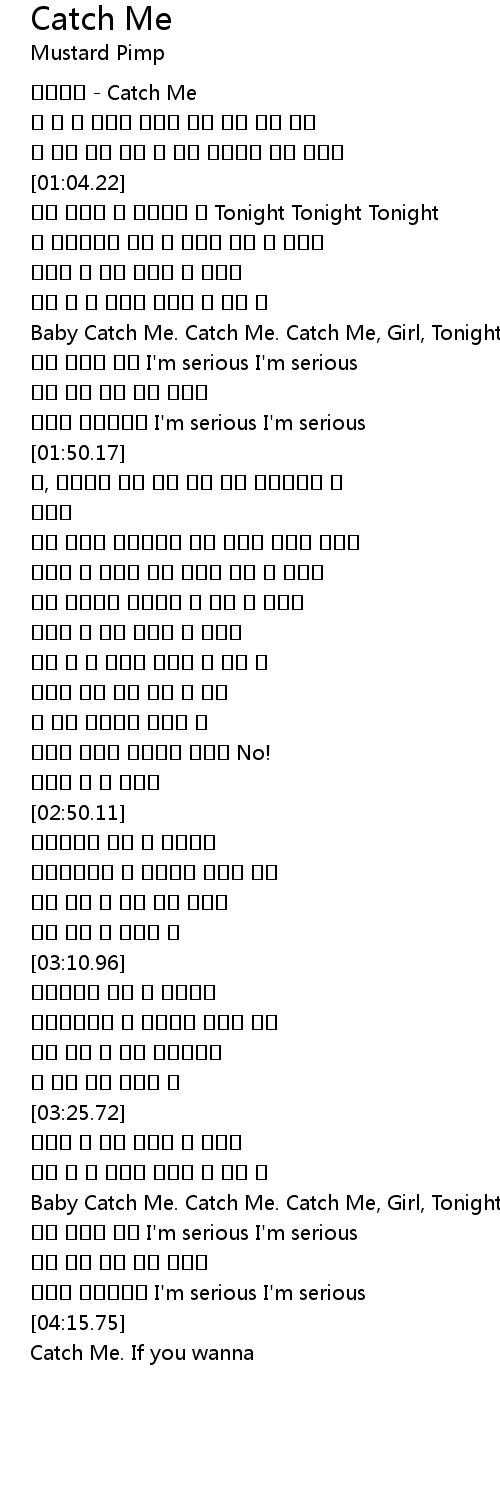 | [01:34.66] | Baby Catch Me. Catch Me. Catch Me, Girl, Tonight. |