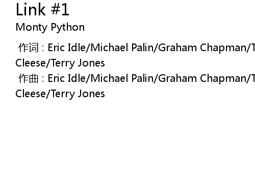 | [00:00.000] | 作曲 : Eric Idle/Michael Palin/Graham Chapman/Terry Gilliam/John Cleese/Terry Jones |