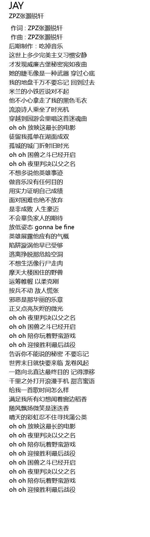 | [00:00.000] | 作词 : ZPZ张灏锐轩 |