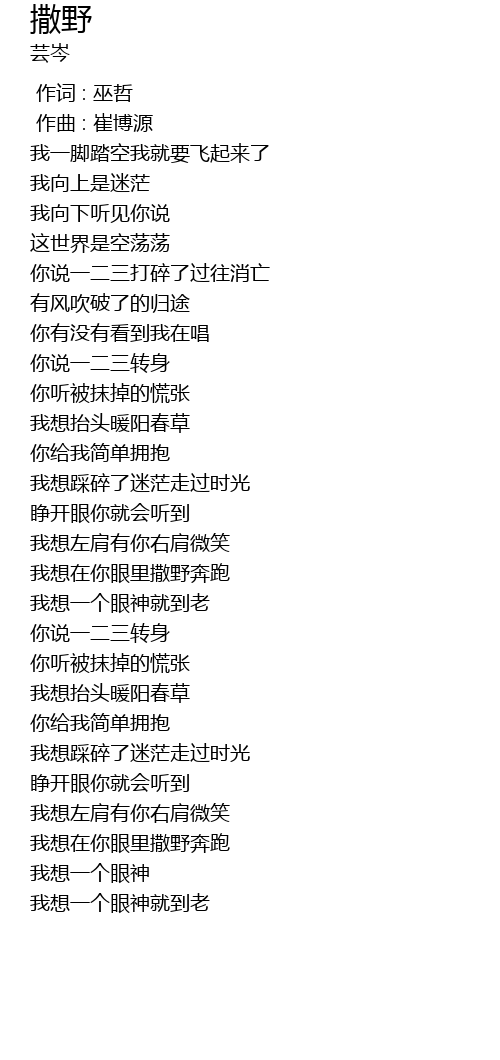 | [02:51.421] | 我想在你眼里撒野奔跑 |
