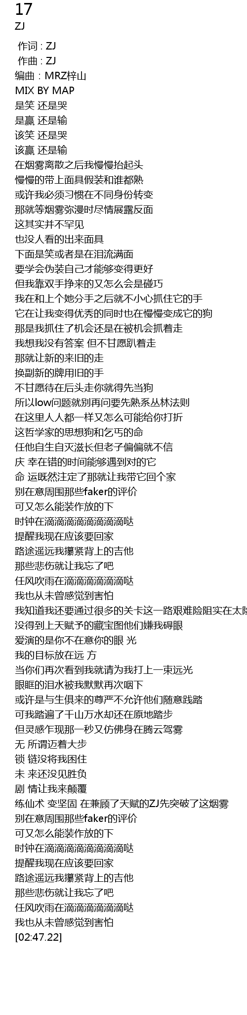 | [02:23.70] | 别在意周围那些faker的评价 |