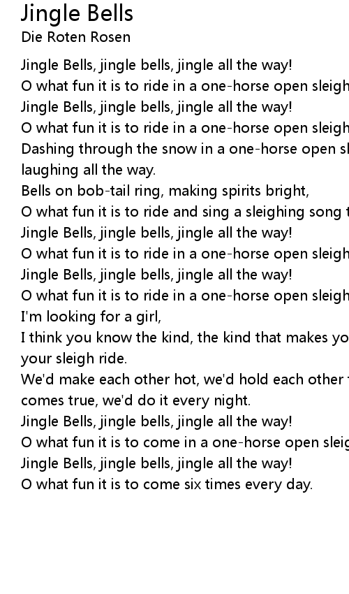 Dashing through the snow in a one-horse open sleigh, over the fields we go, laughing all the way. |