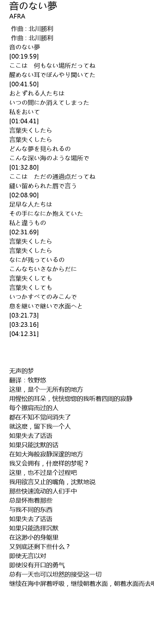 | [00:00.40] | 音のない夢 |