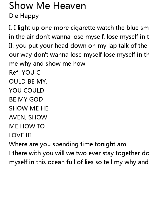 II. you put your head down on my lap talk of the future where will we end up on our way don't wanna lose myself lose myself in this ocean full of lies so tell me why and show me how |