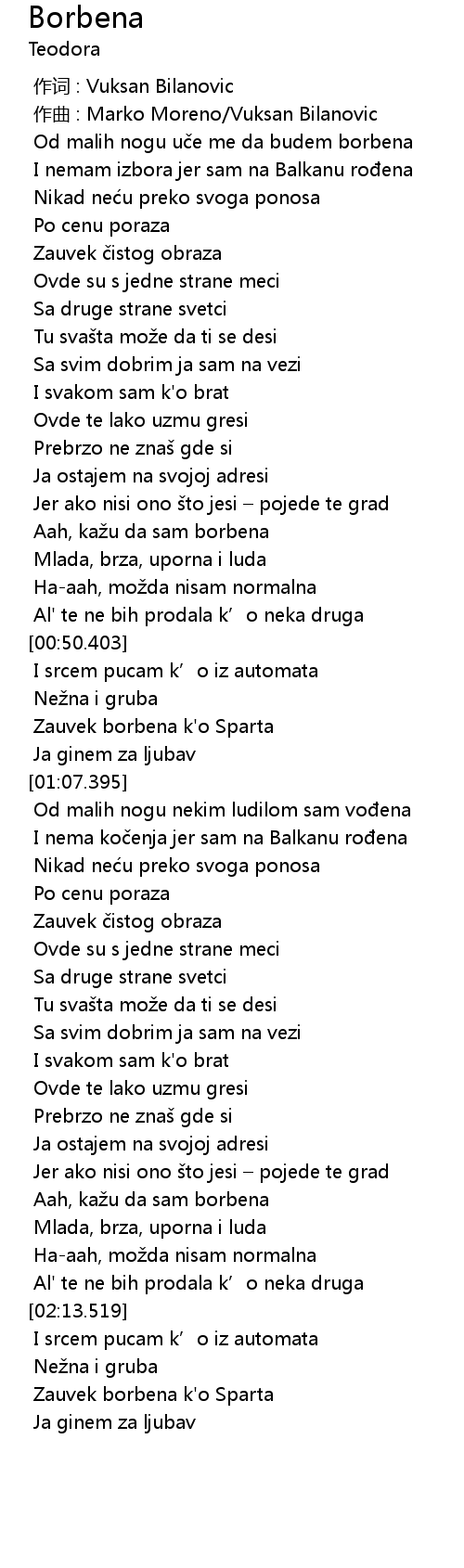 | [00:03.526] | I nemam izbora jer sam na Balkanu rođena |
