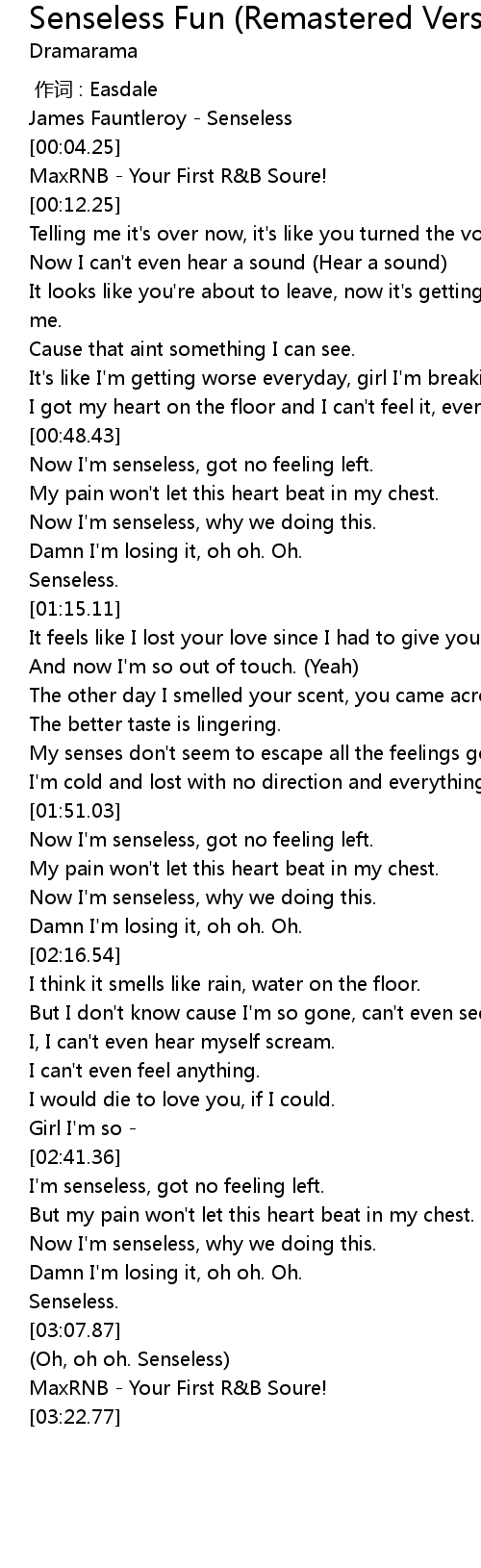 | [03:08.62] | Oh, oh oh. Senseless |
