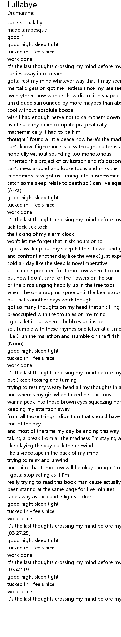 | [03:36.29] | it s the last thoughts crossing my mind before my sleep |