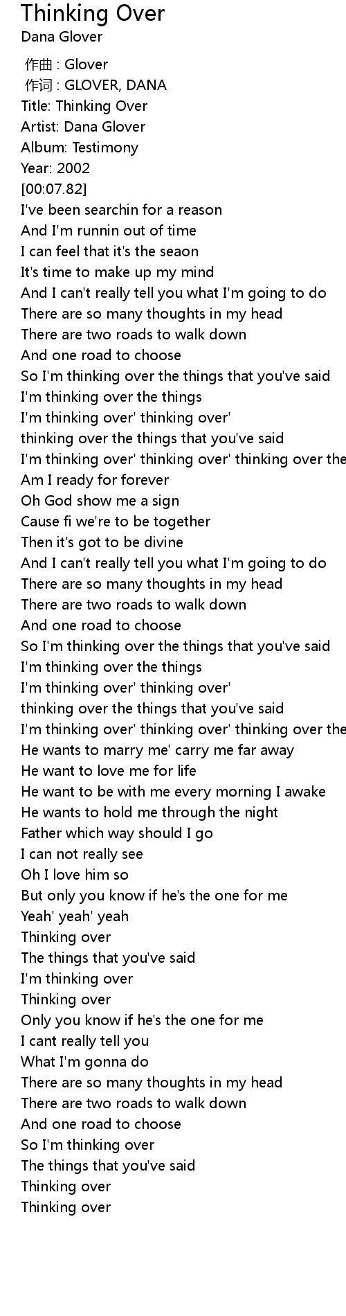 | [00:01.82] | Title: Thinking Over |