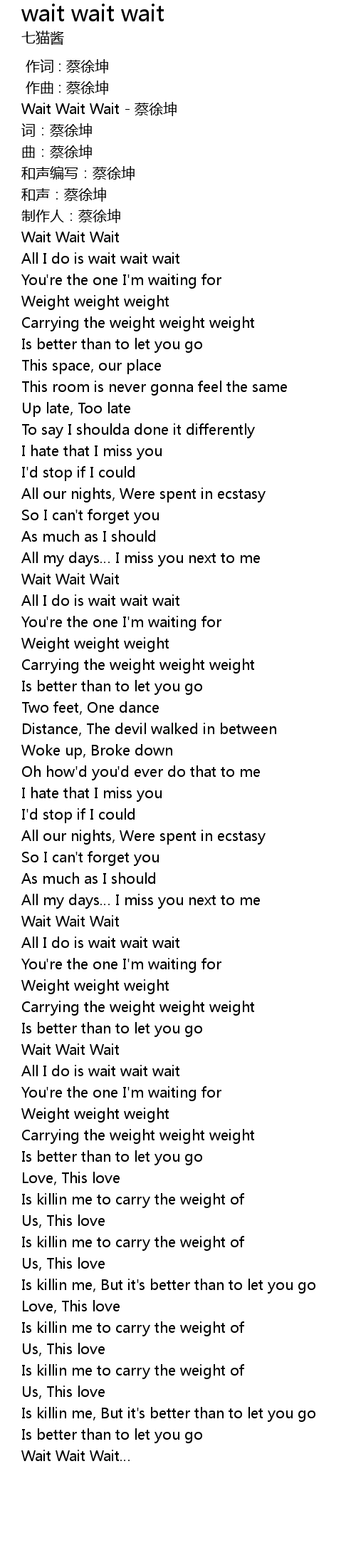 | [00:06.188] | Wait Wait Wait cai xu kun |