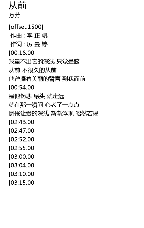 | [00:00.00][00:18.00] | 从前 有过一段爱恋 |