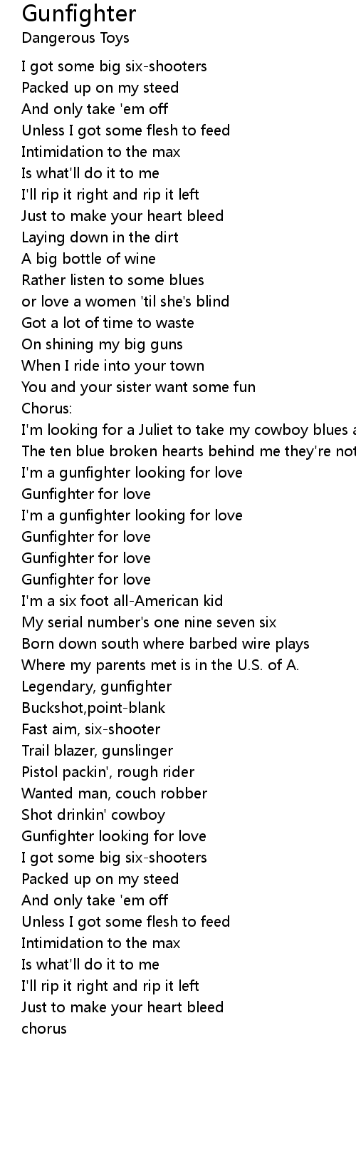 I'm a gunfighter looking for love |
