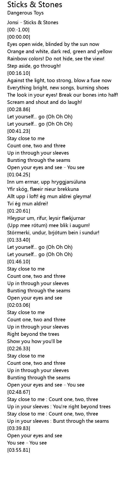 | [00:-2.00] | Jonsi Sticks Stones |