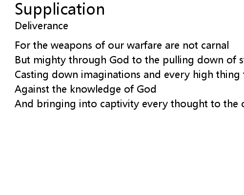 | But mighty through God to the pulling down of strongholds | |