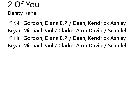 | [00:00.000] | 作词 : Gordon, Diana E.P. / Dean, Kendrick Ashley Jevon / Cox, Bryan Michael Paul / Clarke, Aion David / Scantlebury, Darnley De Costa |