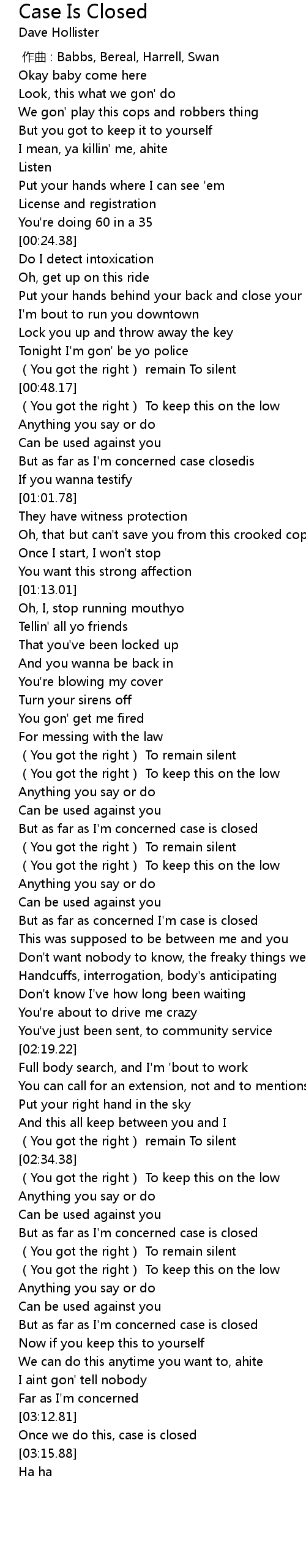 | [00:56.21] | But as far as I'm concerned case closedis |
