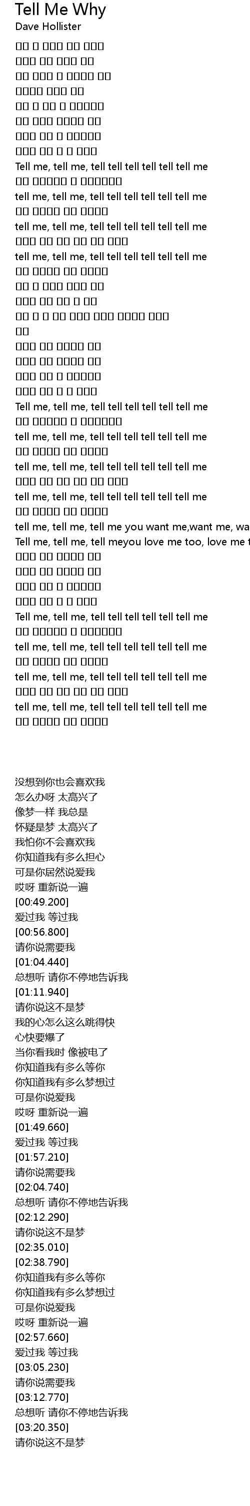 | [00:49.200] | Tell me, tell me, tell tell tell tell tell tell me |