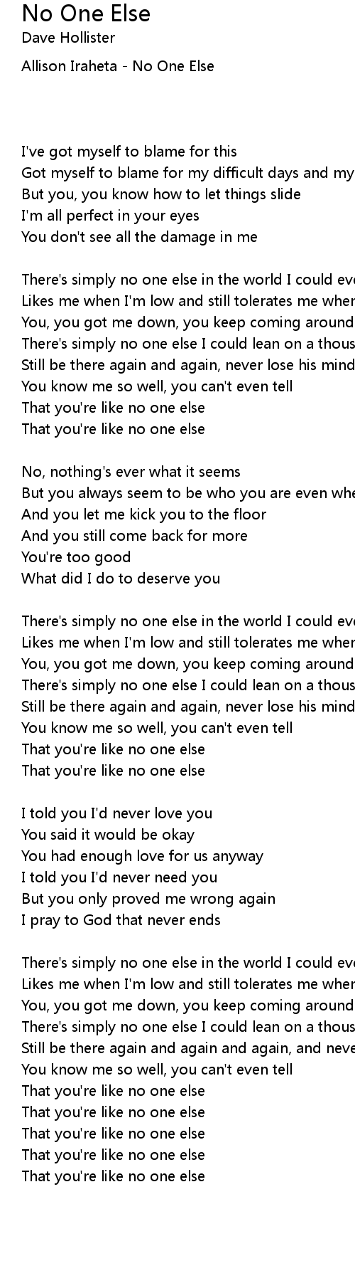 There's simply no one else in the world I could ever find |