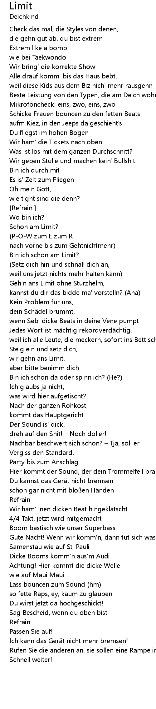 | wir gehn ans Limit, | |