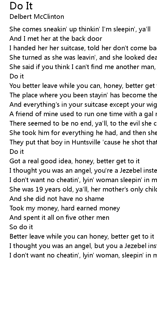 I handed her her suitcase, told her don't come back no more |