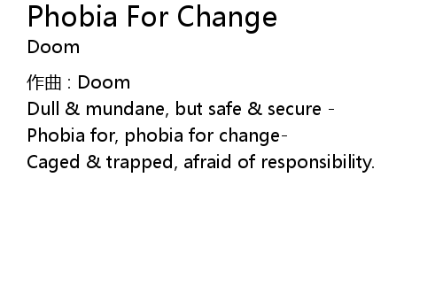 | 歌曲 | Phobia For Change |