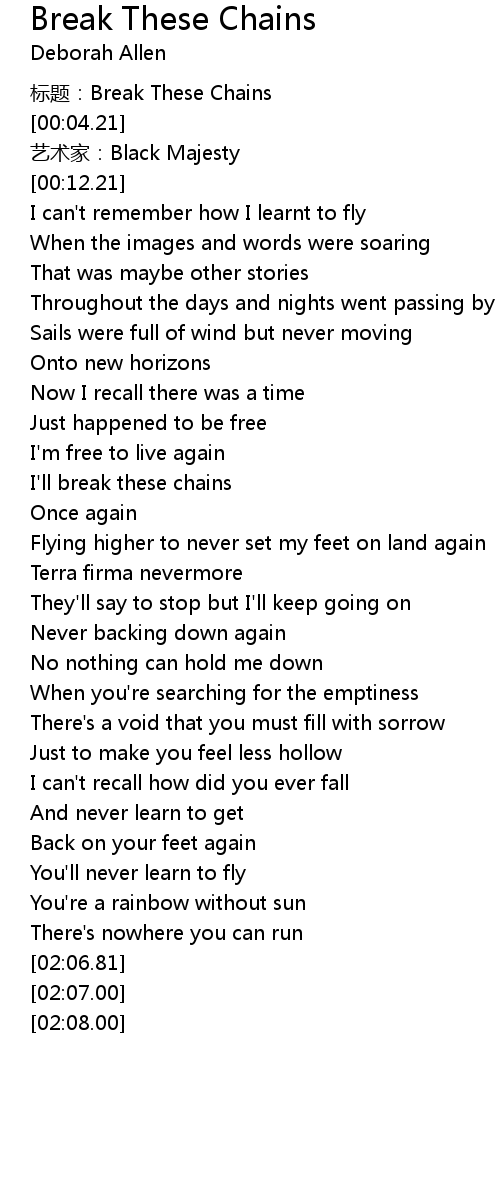 | [00:00.00] | 标题:Break These Chains |