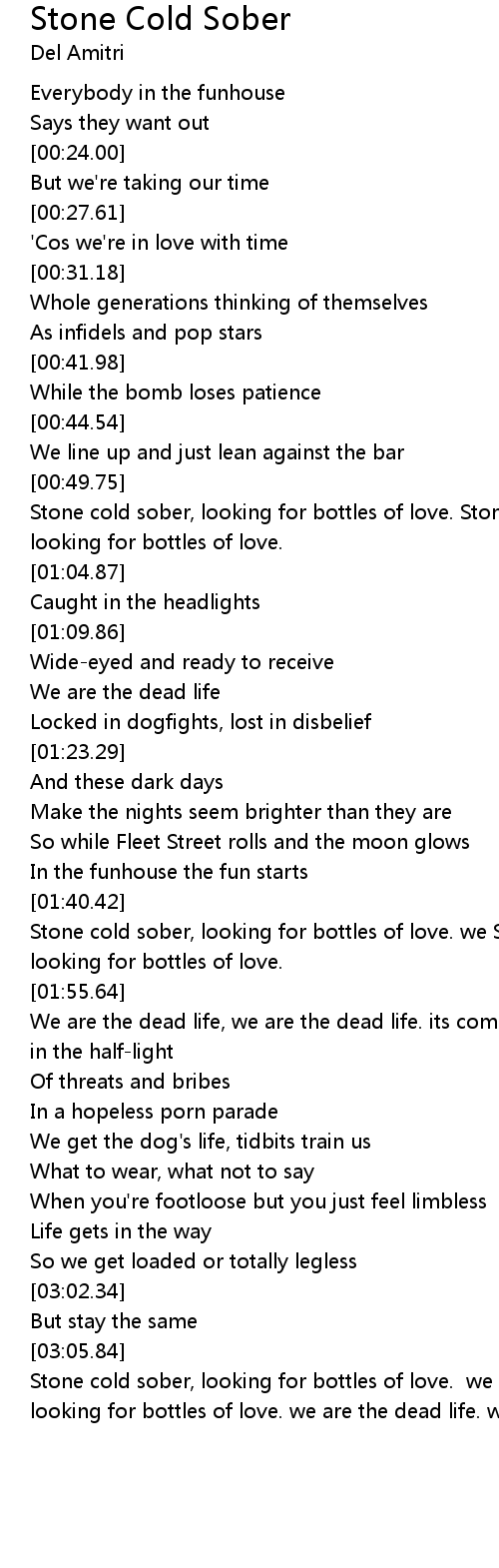 Stone cold sober, looking for bottles of love. we Stone cold sober, looking for bottles of love. we are the dead life. we are the dead life. |