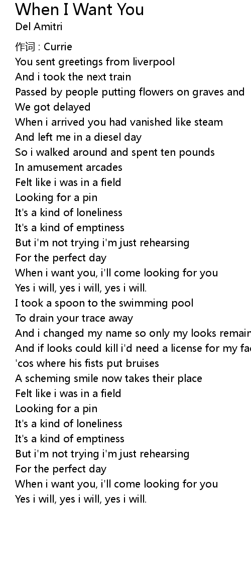 | 歌曲 | When I Want You |
