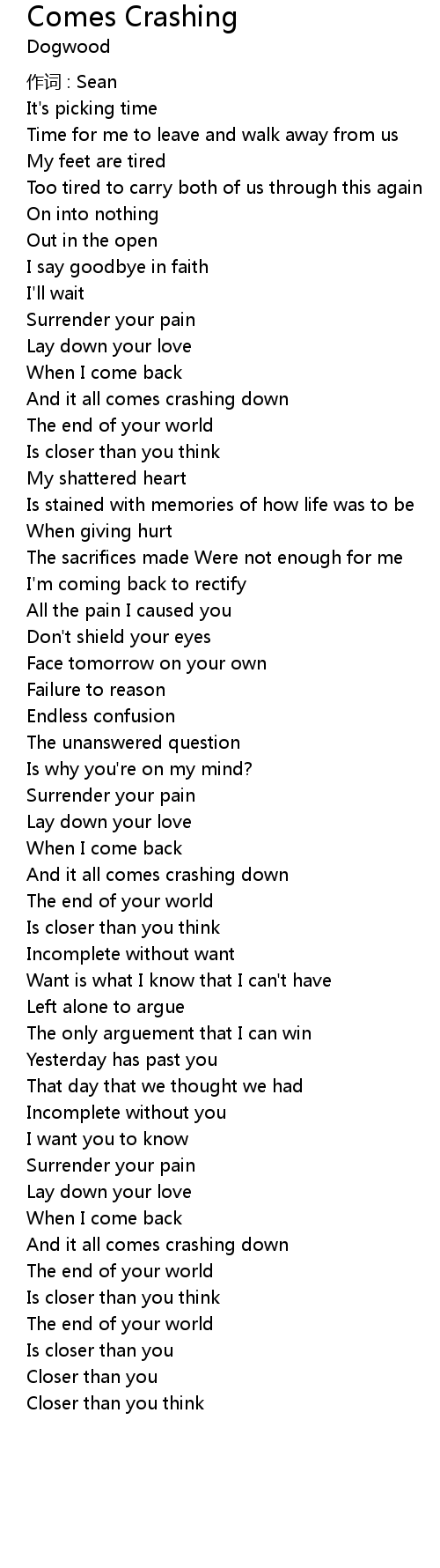 | 歌曲 | Comes Crashing |