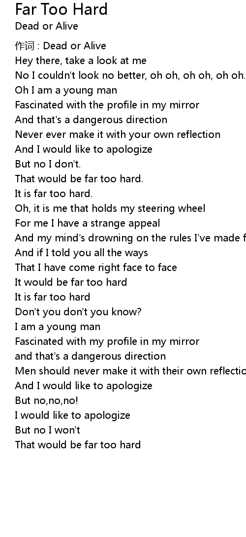 | 歌曲 | Far Too Hard |