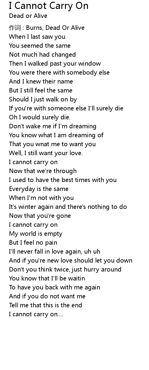 | 歌曲 | I Cannot Carry On |