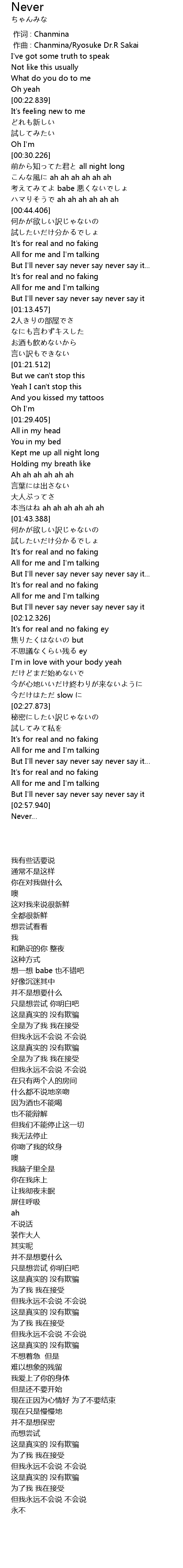 | [00:01.000] | zuò qǔ : Chanmina Ryosuke Dr. R Sakai |