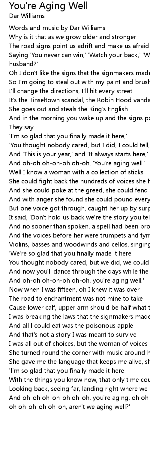 And oh-oh oh-oh-oh oh-oh, you're aging well.' |